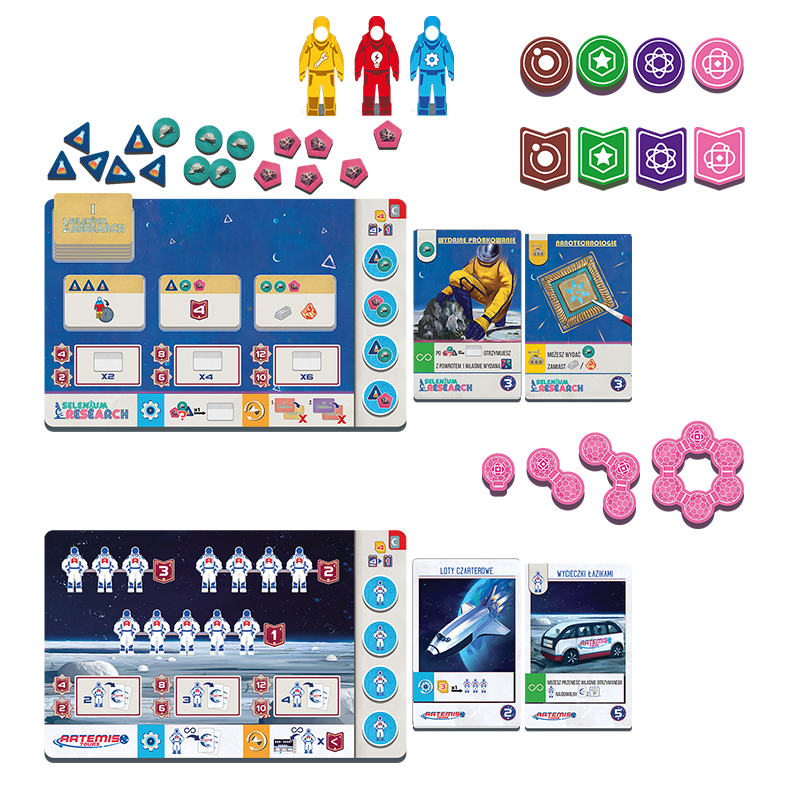 Przydzielanie pracowników: gracze używają Inżynierów, Naukowców i Techników w połączeniu z różnymi obszarami planszy, aby osiągać swoje cele. Muszą nieustannie zmagać się z rywalami, którzy również chcą wykorzystać najlepsze – i, oczywiście, najmniej dostępne – pola!